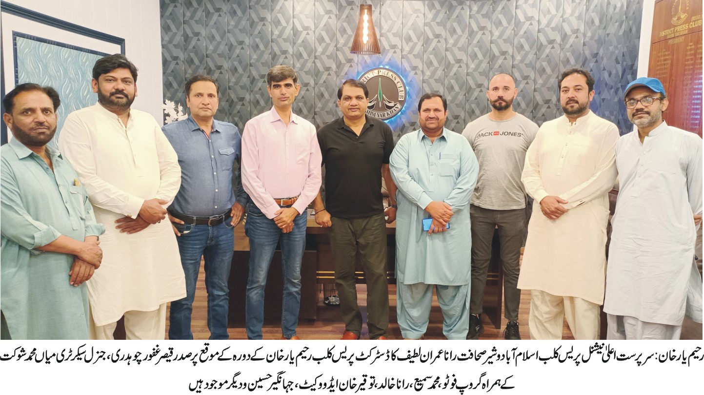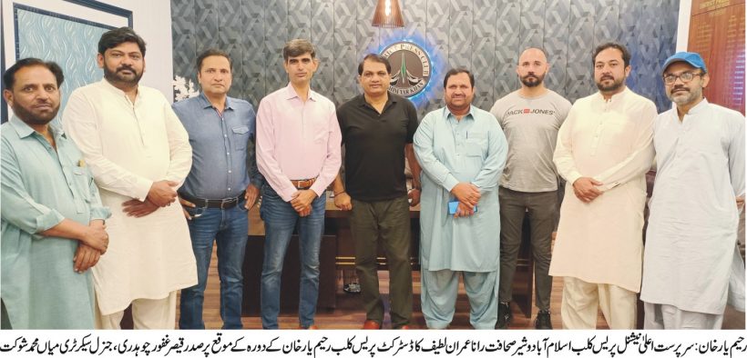 رحیم یارخان(اردو ٹائمز) سرپرست اعلیٰ نیشنل پریس کلب اسلام آباد وشیرصحافت راناعمران لطیف کی ڈسٹرکٹ پریس کلب آمد