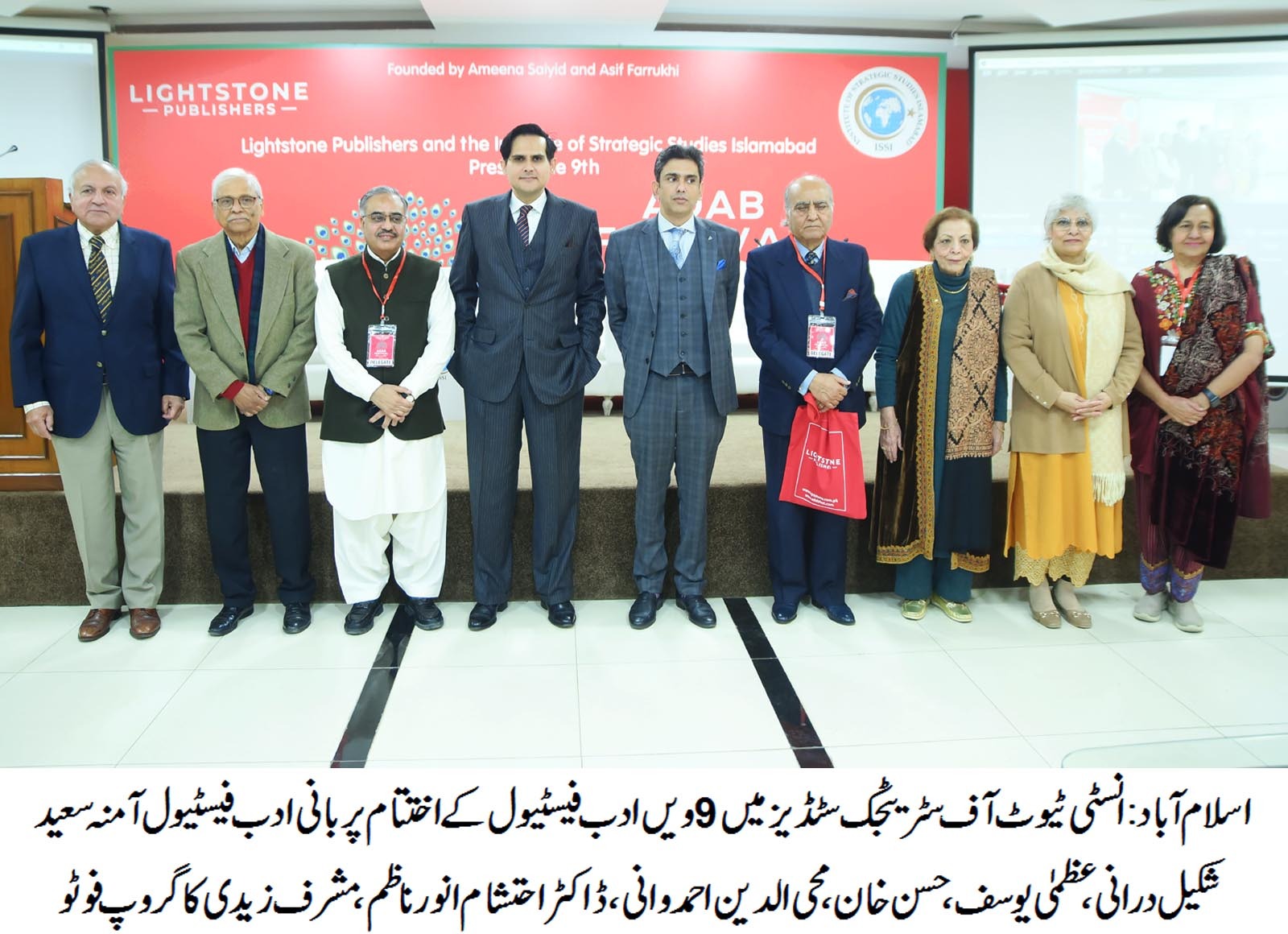 اسلام آباد(اردو ٹائمز) لائٹ اسٹون پبلشرزاور انسٹی ٹیوٹ آف اسٹریٹجک اسٹڈیز اسلام آباد کی طرف سے منعقد کئے جانے والے نویں ادب فیسٹول کا انعقاد