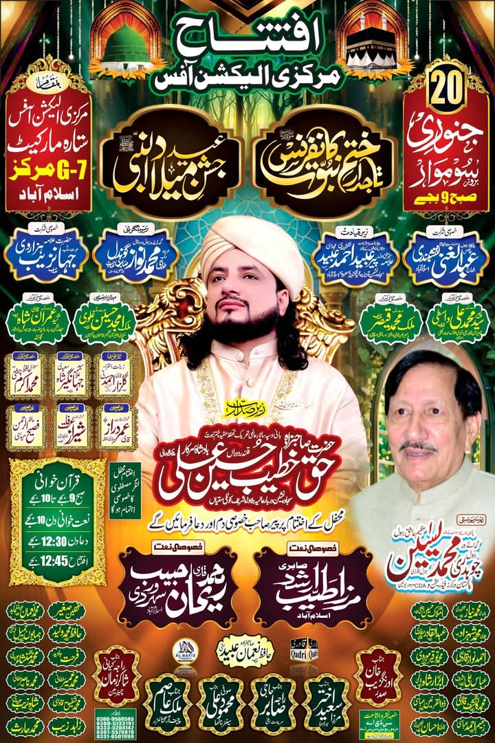 اسلام آباد (اردو ٹائمز) سی ڈی اے ریفرنڈم کے حوالے سے سی ڈی اے مزدور یونین (چوہدری محمد یٰسین گروپ) کے زیر اہتمام محفل میلادؐ اور مرکزی الیکشن آفس کا افتتاح