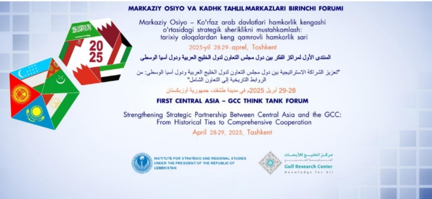 Jointly organized by the Institute for Strategic and Regional Studies under the President of Uzbekistan and the Gulf Research Center of Saudi Arabia, the high-profile event will gather more than 70 prominent experts from across Central Asia, including Kazakhstan, Kyrgyzstan, Tajikistan, Turkmenistan, and Uzbekistan, and GCC member states such as Saudi Arabia, the United Arab Emirates, Qatar, Kuwait, Oman, and Bahrain.