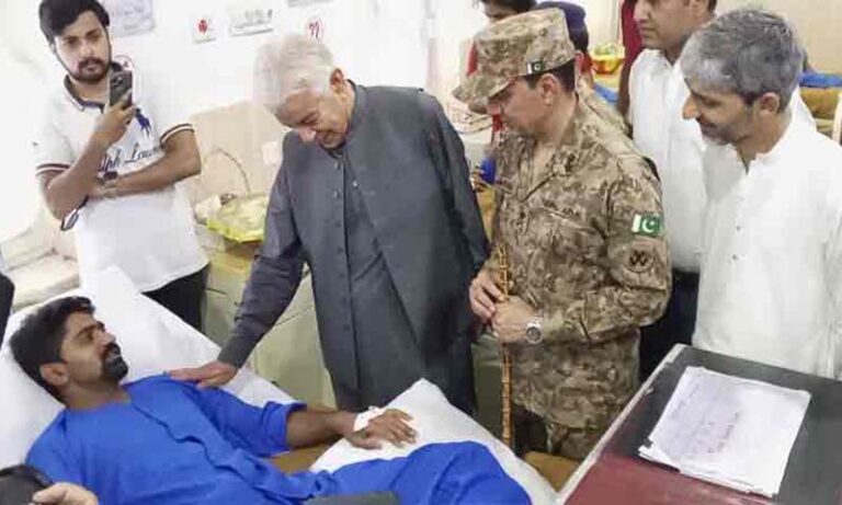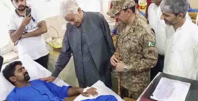 خواجہ آصف نے سی ایم ایچ سیالکوٹ کا دورہ کیا جہاں انہوں نے پاک بھارت کشیدگی کے دوران زخمی ہونے والے پاک فوج کے جوانوں کی عیادت کی۔وزیر دفاع کے ہمراہ جی او سی 15 ڈیو میجر جنرل عمران خان بابر تھے، خواجہ آصف کو زیر علاج زخمیوں کی صحت کے حوالے سے آگاہ کیا گیا۔
