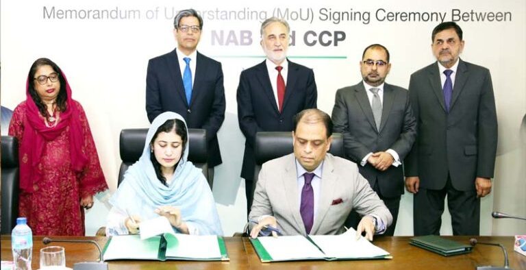 دونوں اداروں کے درمیان تکنیکی تعاون، مشترکہ حکمت عملی پر بھی کام کیا جائے گا۔ معاہدے کے تحت بولیوں کے ڈیٹا تک رسائی، خطرات کی نشاندہی اور قوانین کی پاسداری یقینی بنائی جائے گی۔چیئرمین نیب نے اس موقع پر کہا کہ سرکاری وسائل کے استعمال میں قانون کے تحت مقررہ قواعدو ضوابط پر سختی سے عمل در آمد کے ساتھ ساتھ بولیوں میں کسی قسم کے غیر قانونی ہتھکنڈوں کے مرتکب عناصر کے خلاف قانونی کاروائی اور شفافیت یقینی بنانے کے لئے قومی احتساب بیورو اپنا بھر پور کردار ادا کرے گا۔ چیئرمین نیب لیفٹیننٹ جنرل ریٹائرڈ نذیر احمد نے کہا کہ کرپشن اور ملی بھگت سے نمٹنا سی سی پی اور نیب کی مشترکہ ذمہ داری ہے، پبلک پروکیورمنٹ میں کرپشن سے قومی خزانے کو پہنچنے والے نقصان سے بچانے کے لئے نیب سی سی پی کی ڈیٹا اینالائسز مہارتوں سے استفادہ کرے گا ۔