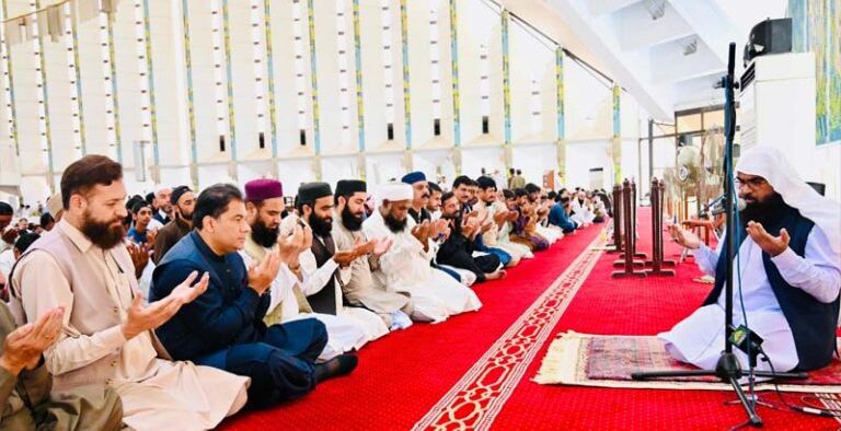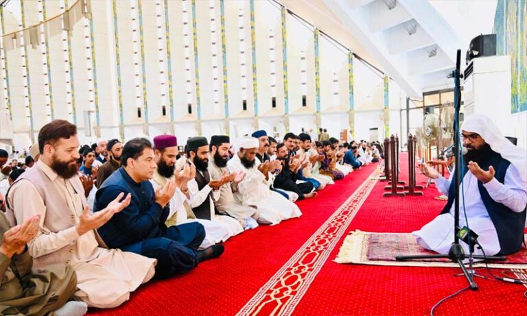 اسلام آباد (اردو ٹائمز) چیئرمین سی ڈی اے، چیف کمشنر اسلام آباد اور ڈی جی سول ڈیفنس محمد علی رندھاوا نے آپریشن بنیان المرصوص میں افواج پاکستان کی تاریخی کامیابی اور شہدا کی عظیم قربانیوں کو خراج عقیدت پیش کرنے کے علاوہ ان کے درجات کی بلندی کے لیے شاہ فیصل مسجد میں نماز جمعہ کی ادئیگی کے بعد یوم تشکر کی مناسبت سے منعقدہ دعائیہ تقریب میں شرکت کی۔
