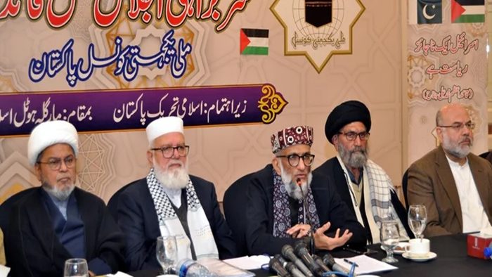 اسلام آباد (اردو ٹائمز) حکومت نے اسرائیل کو تسلیم کرنے کی کوشش کی تو سخت مزاحمت کرینگے ، ملی یکجہتی کونسل