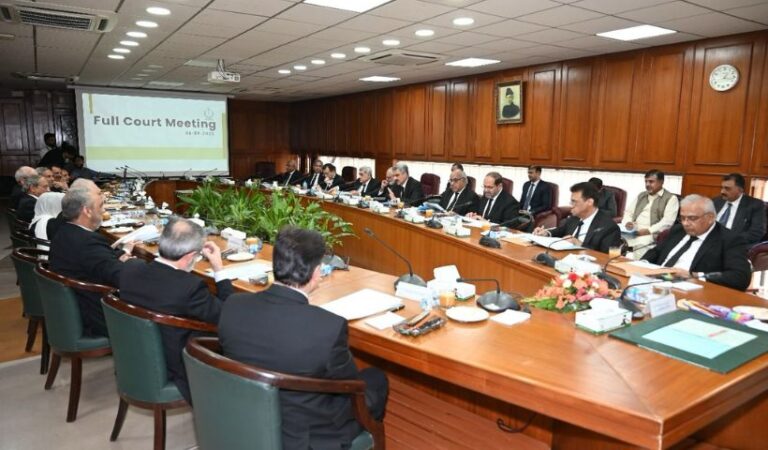 اسلام آباد (اردو ٹائمز) سپریم کورٹ کا انتظامی فل کورٹ اجلاس کا اعلامیہ جاری، اجلاس چیف جسٹس پاکستان یحییٰ آفریدی کی زیر صدارت ہوا، فل کورٹ اجلاس میں سپریم کورٹ کے ججز شریک ہوئے،اجلاس میں سپریم کورٹ رولز 2025 کا جائزہ لیا گیا