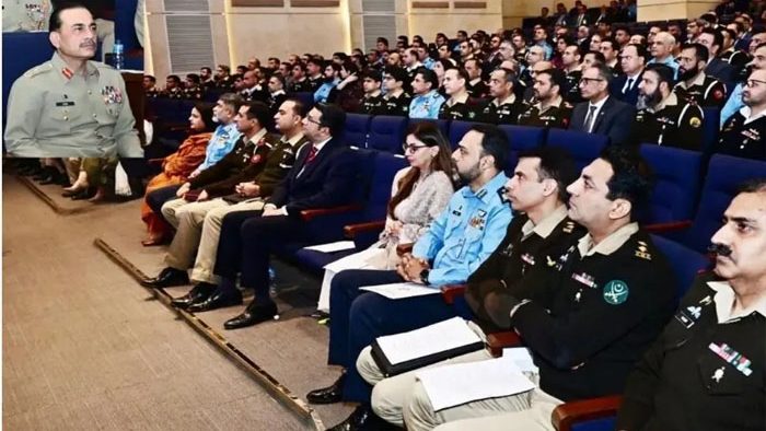 چیف آف ڈیفنس فورسز نے زور دیا کہ ان چیلنجز سے نمٹنے کے لیے ہمہ جہتی تیاری، مسلسل خود کو ڈھالنے کی صلاحیت اور قومی طاقت کے تمام عناصر کے درمیان مربوط ہم آہنگی ناگزیر ہے۔فیلڈ مارشل نے کہا کہ دشمن عناصر براہِ راست محاذ آرائی کے بجائے بالواسطہ اور مبہم طریقے اختیار کر رہے ہیں، جن میں پراکسیز کے ذریعے داخلی کمزوریوں سے فائدہ اٹھانا شامل ہے۔انہوں نے مستقبل کی قیادت پر زور دیا کہ وہ ان پیچیدہ اور کثیرالجہتی فکری و ادراکی چیلنجز کو بروقت پہچاننے اور مثر انداز میں ناکام بنانے کی صلاحیت رکھے۔