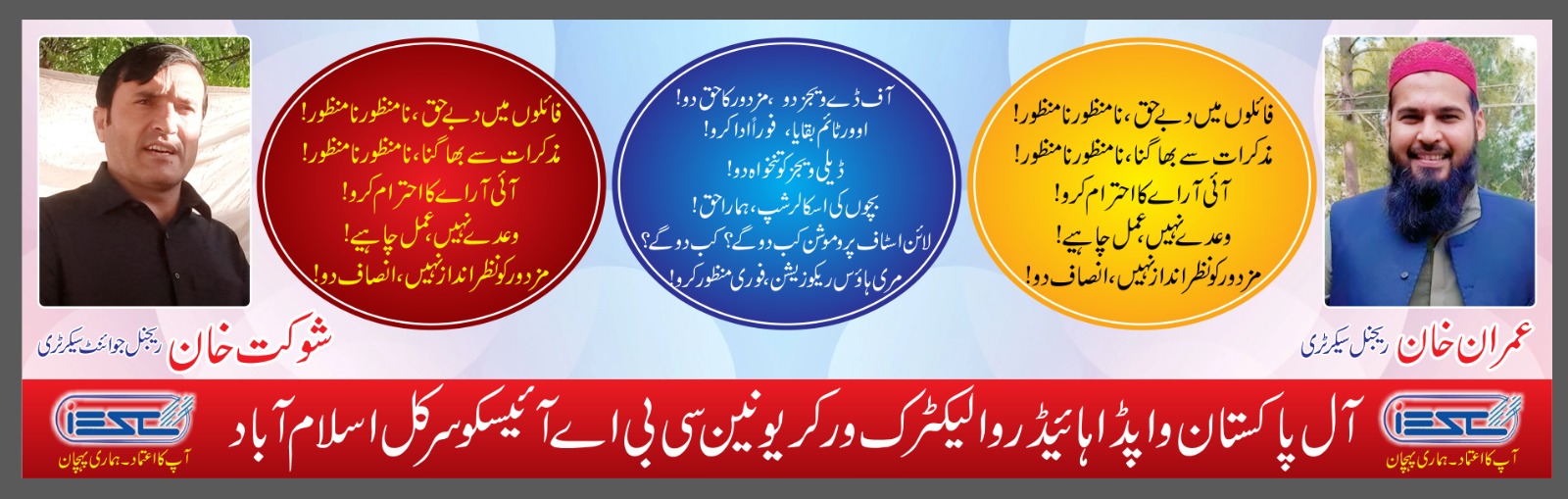 اسلام اباد (اردو ٹائمز) 15 جنوری 2026 نجکاری کے خلاف اسکو انتظامیہ سے کامیاب مذاکرات واپڈا کی سب سے بڑی یونین ہائیڈرو یونین مزدوروں کی اواز